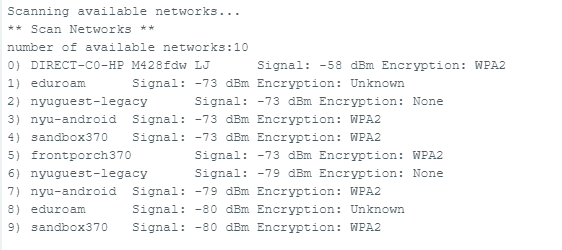 Curious question.. if the Encryption is Unknown, does that mean the network completely unprotected (other than the fact that it is probably a public free Wifi)? How would one attack it? (relating to the Applied Cryptography class that I'm trying to register but got credit maxed out) -> looking for weak/reused password (attacker use the known plaintext attack?), observing handshakes that occur in the victim's network (Known Plaintext Attack!), stealing credentials (by luring user to faux access point) instead of direct attack on encryption algo/finding the key.nc -l 8080 | tee log.json &