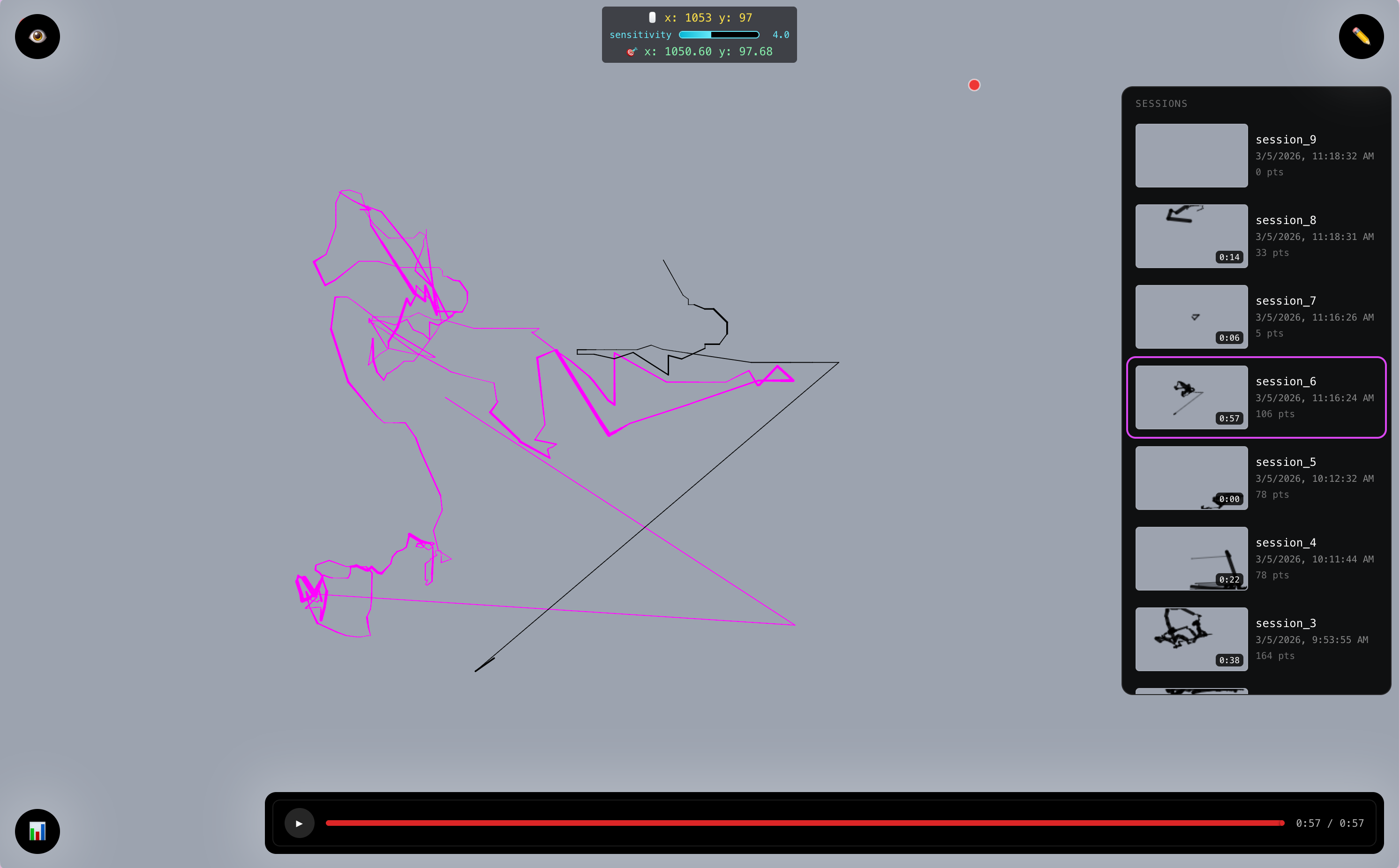 - instead of drawing from left -> right or top -> right of screen, we just draw by delta of the movement, which may be annoying at times because it may be too small so we added a sensitivity knob to adjust the scale unit for the delta.