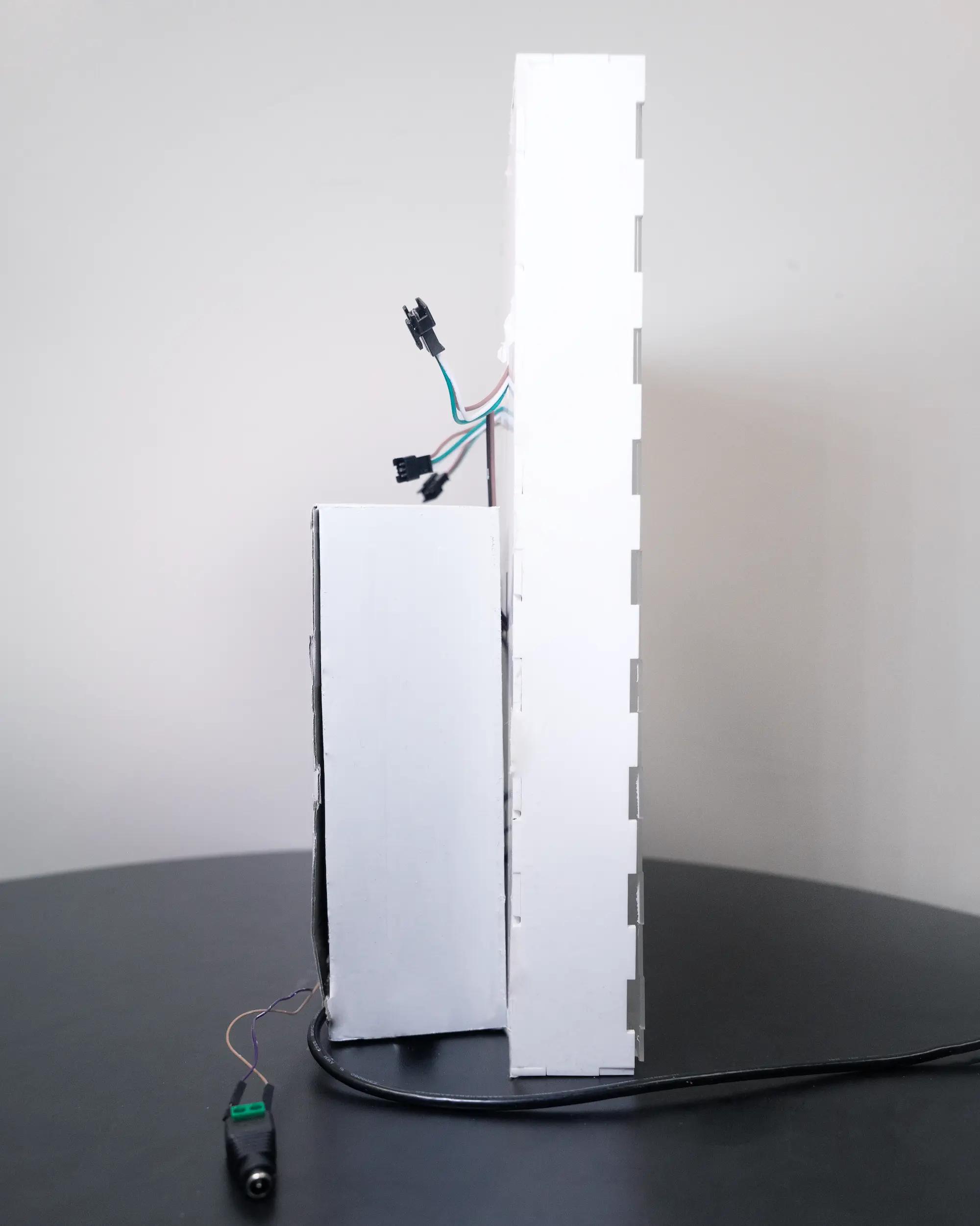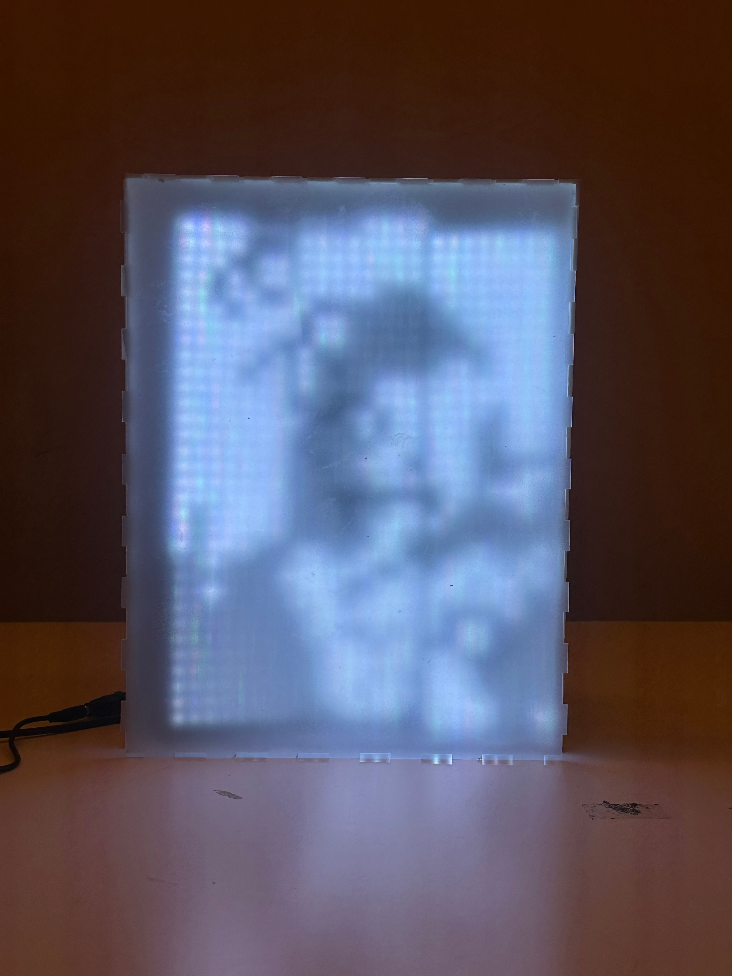This is a new variation that I thought may be extending the concept further (if not straying away, i hope!). I got the idea because I notice the aliasing band that happens while documenting my work-in-progress. I thought, wouldn't it be meta if I refer to this aliasing as a way to make the subject (the LED lightbox artwork) 'copy' the camera artifacts on the environment and hinting the audience that this work has a little something to do with the camera shutter speed properties?